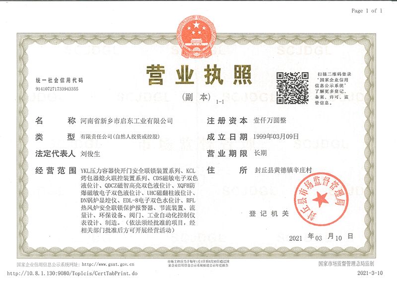 河南省新鄉(xiāng)市啟東工業(yè)有限公司始建于1987年,是專注研發(fā)、生產(chǎn)自動化儀器儀表(主要與壓力容器、鍋爐等容器配套使用)的廠家。主要產(chǎn)品有液位計(jì)(磁敏雙色型、磁翻柱型等)系列、烤包器熄火聯(lián)控裝置系列、壓力容器快開門安全聯(lián)鎖保護(hù)裝置系列、鍋爐報(bào)警器系列。二十多年來,公司產(chǎn)品暢銷國內(nèi)并遠(yuǎn)銷俄羅斯、蒙古與東南亞,深得廣大用戶的信賴和好評。我們多年來致力于自動化儀器儀表的研制生產(chǎn),公司現(xiàn)具有完善的生產(chǎn)、試驗(yàn)、檢測手段和設(shè)備??萍紕?chuàng)新、誠信服務(wù),是我們不變的經(jīng)營理念,我們將以強(qiáng)有力的技術(shù)支持及售后竭誠為客戶提供良好的服務(wù)。  2012年我公司成功研發(fā)了KCL系列烤包器熄火聯(lián)控裝置,并于2013年2月2日榮獲中華人民共和國國家知識產(chǎn)權(quán)局辦法的《實(shí)用新型**證書》<**號:2021202257735>該產(chǎn)品廣泛應(yīng)用于唐鋼等大型鋼鐵企業(yè),為烤包器安全作業(yè)提供了有力的保障?! ?002年我公司成功研發(fā)磁敏電子雙色液位計(jì)獨(dú)特的高亮度LED紅綠雙色顯示,獲得了專家的首肯和用戶的一致好評。在此基礎(chǔ)上我公司研發(fā)人員十年磨一劍,致力于XQFB-1防爆型磁敏雙色液位計(jì)的研發(fā),于2013年12月27日由國家防爆電器產(chǎn)品質(zhì)量監(jiān)督檢驗(yàn)中心檢驗(yàn)合格并頒發(fā)防爆合格證書<編號:cnex19.0883>。該產(chǎn)品性能得到了充分的發(fā)揮,廣泛應(yīng)用于含有Ⅱ類A·B級T1-T4組可燃?xì)怏w或蒸汽與空氣混合形成的爆炸性混合物的0區(qū)、1區(qū)危險場所。連接用戶DCS或PLC系統(tǒng)實(shí)現(xiàn)遠(yuǎn)距離集中顯示和控制,從而實(shí)現(xiàn)節(jié)能、數(shù)字化管理。為用戶增加了一定的經(jīng)濟(jì)效益和社會效益,。2014年公司成功申請了夢潤儀表的logo,新的品牌新的形象,夢潤儀表是啟東的LOGO, 歡迎新老用戶前來洽談合作。  我們一如既往地注重科研的投入,憑借產(chǎn)品的不斷更新、加大科技含量,進(jìn)一步拓展市場。我們相信品質(zhì)成就未來,以過硬質(zhì)量、優(yōu)惠價格、完善的售后服務(wù)熱忱歡迎廣大客戶來我司視察指導(dǎo)、洽談業(yè)務(wù);精誠合作,共創(chuàng)輝煌!